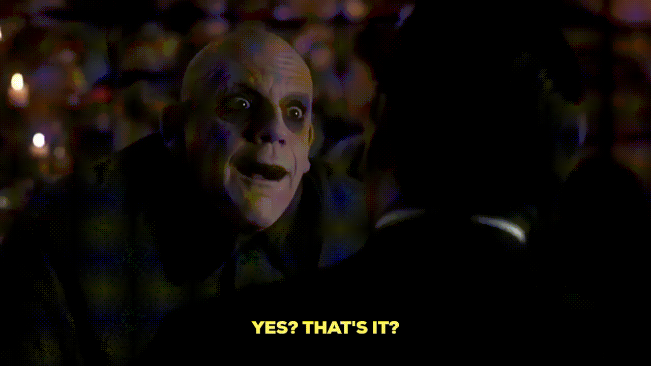 Something that the Addams's are exceptionally good at is sensing each other's emotions and knowing exactly when to comfort and when to act. Sometimes the best thing you can do is just make yourself available for your partner and wait for them to come to you. In other words, when the storm hits, be an open shelter.